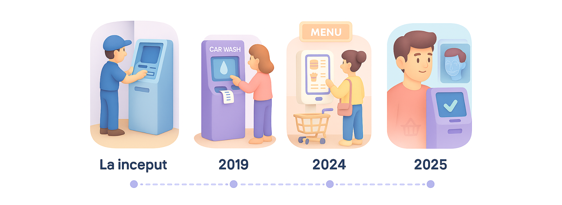 Din 2019, am început să producem kioskuri inteligente pentru spălătorii auto. În 2024, am lansat terminale pentru restaurante fast food și festivaluri precum Beach, Please!, Untold sau Neversea, unde zeci de mii de oameni au experimentat plăți rapide și comenzi simple, cu un zâmbet.